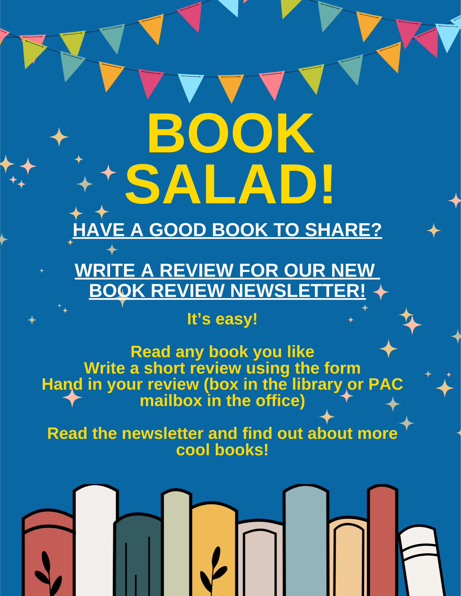 A project from the library committee, Book Salad is a book review and recommendation newsletter by and for South Park students!